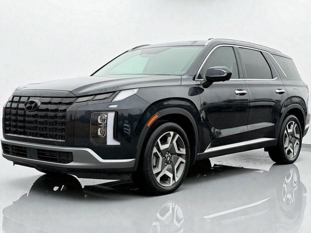 Well Equipped with: Option Group 01, Hyundai Certified Used Vehicles Certified, 3rd row seats: split-bench, 4-Wheel Disc Brakes, 6 Speakers, ABS brakes, Air Conditioning, All-Season Fitted Liners, Alloy wheels, AM/FM radio: SiriusXM, Apple CarPlay & Android Auto, Auto High-beam Headlights, Auto-dimming door mirrors, Auto-dimming Rear-View mirror, Automatic temperature control, Brake assist, Bumpers: body-color, Cargo Cover, Cargo Net, Cargo Tray, Carpeted Floor Mats, Delay-off headlights, Driver door bin, Driver vanity mirror, Dual front impact airbags, Dual front side impact airbags, Electronic Stability Control, Emergency communication system, Exterior Parking Camera Rear, Four wheel independent suspension, Front anti-roll bar, Front Bucket Seats, Front Center Armrest, Front dual zone A/C, Front reading lights, Fully automatic headlights, Garage door transmitter: HomeLink, H-Tex Leatherette Seat Trim, Heated & Ventilated Front Bucket Seats, Heated door mirrors, Heated front seats, Heated rear seats, Heated steering wheel, Illuminated entry, Knee airbag, Leather steering wheel, Low tire pressure warning, Memory seat, Navigation System, Occupant sensing airbag, Outside temperature display, Overhead airbag, Overhead console, Panic alarm, Passenger door bin, Passenger vanity mirror, Power door mirrors, Power driver seat, Power Liftgate, Power moonroof, Power passenger seat, Power steering, Power windows, Radio data system, Radio: AM/FM/MP3 Audio System, Rear air conditioning, Rear anti-roll bar, Rear audio controls, Rear reading lights, Rear side impact airbag, Rear window defroster, Rear window wiper, Reclining 3rd row seat, Remote keyless entry, Roadside Assistance Kit, Security system, Speed control, Speed-sensing steering, Split folding rear seat, Spoiler, Steering wheel mounted audio controls, Tachometer, Telescoping steering wheel, Tilt steering wheel, Traction control, Trip computer, Turn signal indicator mirrors, Variably intermittent wipers, Ventilated front seats, Ventilated rear seats, Wheel Locks, and Wheels: 20" x 7.5J Alloy.