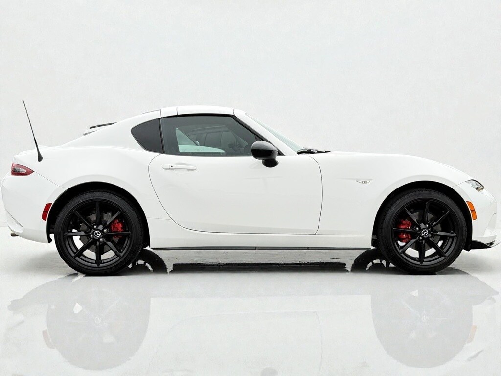 Well Equipped with: 4-Wheel Disc Brakes, 9 Speakers, ABS brakes, Air Conditioning, Alloy wheels, AM/FM radio: SiriusXM, AppLink/Apple CarPlay and Android Auto, Brake assist, Bumpers: body-color, Cloth Upholstery w/Light Gray Stitching, Convertible HardTop, Convertible roof lining, Convertible roof wind blocker, Driver vanity mirror, Dual front impact airbags, Dual front side impact airbags, Electronic Stability Control, Emergency communication system: MAZDA CONNECT, Exterior Parking Camera Rear, Four wheel independent suspension, Front anti-roll bar, Front Bucket Seats, Front Center Armrest, Glass rear window, Heated Front Bucket Seats, Heated front seats, Illuminated entry, Leather Shift Knob, Low tire pressure warning, MAZDA CONNECT Infotainment System, Occupant sensing airbag, Outside temperature display, Panic alarm, Passenger vanity mirror, Power convertible roof, Power door mirrors, Power steering, Power windows, Radio data system, Radio: Bose Audio System w/AudioPilot, Rear anti-roll bar, Rear window defroster, Remote keyless entry, Speed control, Speed-sensing steering, Spoiler, Sport steering wheel, Steering wheel mounted audio controls, Tachometer, Telescoping steering wheel, Tilt steering wheel, Traction control, Trip computer, Variably intermittent wipers, and Wheels: 17" Metallic Black Aluminum Alloy.